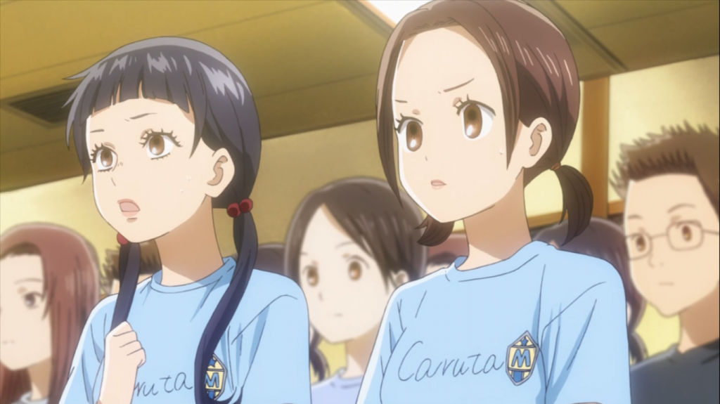 As for Taichi, things are never simple. His opponent continues to remind him of Arata, a simultaneously motivating and distracting factor that keeps him from really playing his A-game consistently. It seems that no matter how hard he tries, luck is always against him, and though the rest of the team really needs to rally together (especially once Tsukuba and Komano lose), neither he, Nishida, or Chihaya have managed to overcome their deficiencies. Then there's Arata and Shinobu, both deeply affected by the match despite one's initial disinterest and the other's inability to watch. It's very true that both characters are loners, but it seems that threads are being laid down to change that. Shinobu certainly shows interest by remembering Chihaya's name as a potential opponent, and I wouldn't be surprised if the link she feels to Arata doesn't lead elsewhere by the end of the season.