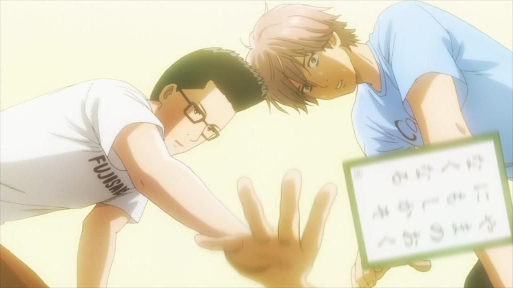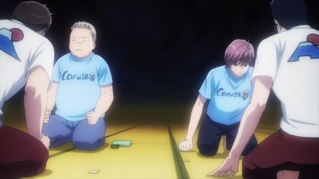 The best part about this episode is that we're once again Taichi-centric and looking at his character through Karuta, rather than watching Karuta through characters as the rest of the season has been so far. There's no doubt that he earns his win, even if it does ultimately come to another luck-of-the-draw; it isn't luck that brings down the abysmal deficit and forces his opponent to commit faults. Taichi isn't willing to go down without a fight this time, and like most of his matches, that's a fight against himself and his fate. His belief in his own luck is so poor that he even assures himself his card won't be read no matter what, and everyone seems to feel the same. Even when synced up with Nishida (a wise trick to learn indeed) and having their chances bettered, Taichi still has to pray to God, promising that if this is the only time in his life where his card is read, he'll never ask for it again.