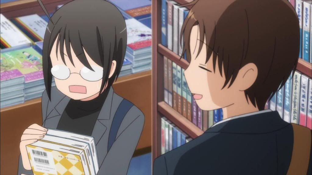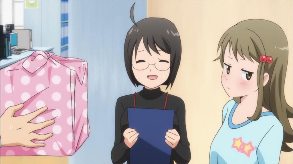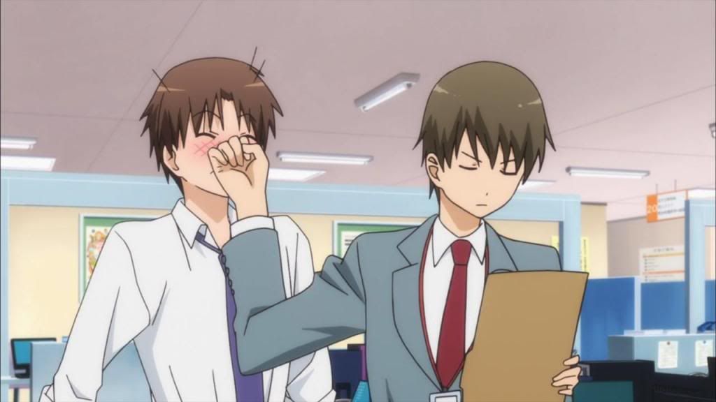 Even more interesting, if somewhat off, is Hasebe himself. I’m constantly on the fence between calling him a jerk and a genuinely good (but opportunistic) guy, and I can see the sparks between him and Lucy so obviously it’s almost an insult to my intelligence. He’s still that guy you can’t help but hate at work for being so awesome (c’mon, ventriloquism and sign language and unexpected thoughtfulness/head patting??) but he’s also definitely more interested in Lucy than in just her email address, especially considering how he always manages to distract himself from getting it. I also like that even though he can be an ass (believe me, sexual harrassment at work can land you in a world of “I can’t believe I have to do this SekuHara training again” or worse, even of it’s in good fun with friends), he’s pretty open about it and aware of what a pain he’s being. I don’t necessarily like that sort of person, but I can definitely appreciate the earnestness of that depiction; people like Hasebe definitely exist, and they can grate in more ways than one when dealing with them directly. However, in the world of SxS, he’s definitely one of my favorite personas, and when coupled with Ichimiya-senpai (you go sir, punching your kouhai when required, no questions asked) or Lucy, I’m finally finding it hard not to laugh in earnest.