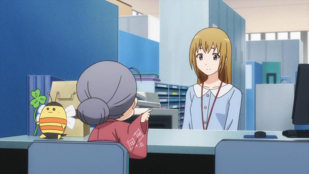 As utterly bizarre as Momoi and his stuffed animal body are, I can’t bring myself to dislike his character in this otherwise down-to-earth show. His presence is completely fantastical, in that I can’t decide if this is a robot or a spiritual thing we’re talking about, but it’s not at all detrimental to the quality of the comedy. In fact, he rather rounds things out nicely with his quirkiness, and it’s obvious that his staff isn’t quite sure how to deal with him either. There are moments where they grudgingly accept his presence (such as when they allow him to observe their work or tie his necktie), and there are others where they clearly can’t quite come to terms with working under a rabbit, stuffed though he may be. Then there’s the humor in the fact that no one wonders how the heck he ended up in such a body, or the fact that his very normal human daughter, Kanon, is around, even though Momoi remembers working years ago with Hasebe’s father (just how long has he been in this body anyway?). Whatever weirdness this is, I don’t think we’ll get an answer soon, if ever, but it is amusing to think about nonetheless.
