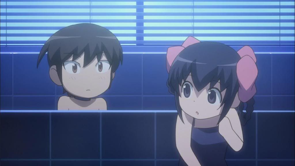 But on the same token, we have a girl like Tenri, someone who understands Keima far more fundamentally than all the other girls put together, and the only girl other than Chihiro to fall for Keima without need for a capture. But unlike Chihiro, Tenri is more aware of the situation; she knows she and Diana (never mind Diana’s own feelings) have an important part in these plans, and while Tenri might not be as aware as her goddess about the various girlfriends Keima has gathered upon himself, she still knows that he’s doing his best at his job, and that he needs reassurance and companionship as much as any other person might. None of the other girls have such an intimate claim to Keima’s true nature, nor do they really love those things that Tenri does. As she says herself, she loves the Keima “that loves playing games”, not the princely suave character he pretends to be for the others, and perhaps in a way, that’s an even lonelier and more painful predicament than Chihiro’s. It’s Tenri, after all, who has to stand in the shadows, the only completely loyal friend and companion Keima has outside of his imouto/bug demon (that embrace though), and the only girl who loves him despite knowing more about his job than the rest.