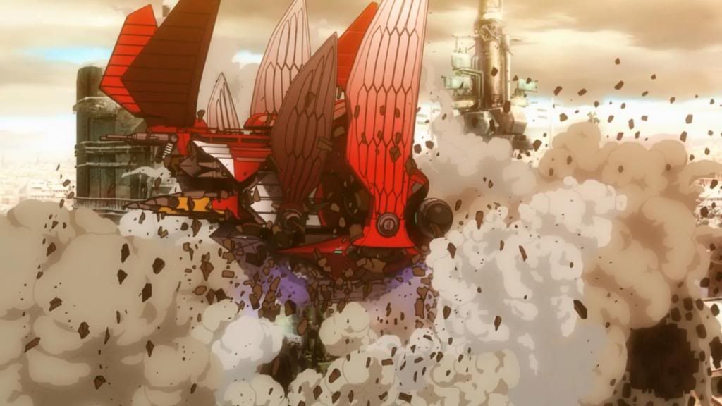 I hope you’re all ready for explosions, because explosions and action are definitely at the core of Galilei Donna’s identity. So much so that it’s a little on the crazy side, though in no way is that a bad thing. The setting and plot are secondary to the sheer show-off power of A-1′s animation and budget (this is some pretty crisp stuff, CGI nonwithstanding) in this premiere, true, but we do start getting an idea about the kind of series this wants to be. I wasn’t expecting mecha, for one thing, with the small amount of information available prior to airing, nor was I expecting a few of the character interactions we’ve been privy to. Somehow I assumed our trio of sisters would be an idyllic and somewhat pandering dynamic of sisterly love and support, but instead I see a family of dissatisfied individuals, and while I don’t think they dislike one another, they’re all pretty much doing their own thing. I find that to be pretty normal, as far as familial relationships go; after all, as an older sister myself, my relationship with my sister is rather all over the place, from irrationally close to somewhat disconnected, and it makes sense for these sisters to be a little cool to one another, especially when considering the fact that they’re living separately thanks to their parents.