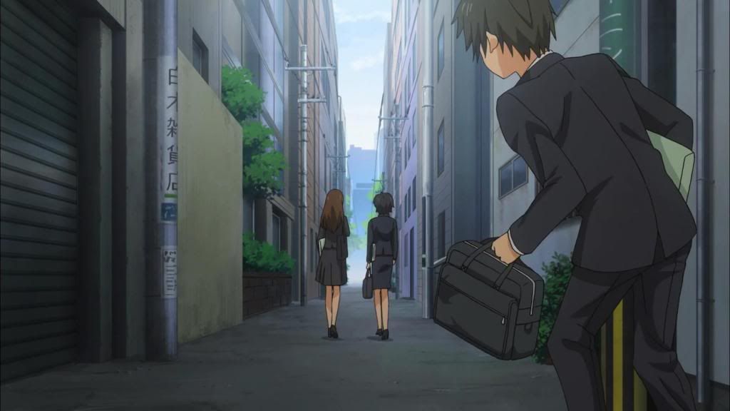 For one thing, the feeling of arriving at college is pretty spot on; there's a fascination with the newness, with all the opportunities and hope one has at first. There's also a sense of being a little lost, either literally or otherwise, and feeling somewhat out of place, and I think Banri does pretty well in depicting these sorts of things. He's a little overwhelmed with the school, but he's optimistic and waiting for great things to happen, and that's how most everyone is as a freshman. AS to Kouko and Mitsuo, they too seem like real people; Mitsuo is tired of being strung along by Kouko's whims and is trying to get away from her, whereas Kouko is definitely obsessed with him, which at the moment doesn't seem all that healthy. Whether or not she loves him, though, is another question; the OP is heavily KoukoxBanri for one thing, and for another, it doesn't really feel like she's in love. Is this about control, familiarity, or something else entirely for her? I'm not sure yet, but I am looking forward to finding out; I've missed this sort of show to round out my taste in anime.