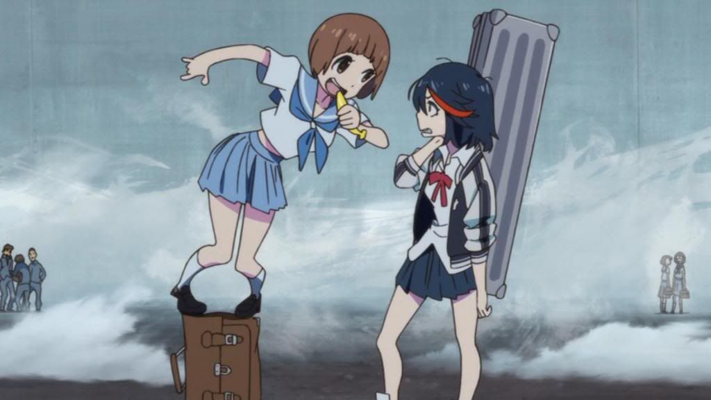 Sometimes being a girl who likes anime is tough, because there's so much that we really want to like and sometimes can't. Being a girl doesn't mean I can't like a show full of fanservice, that's true, and I've stated before that fanservice isn't something I dislike if done right, for whatever sex. Personally I'm unaffected by fanservice in the way it's supposed to work; I'm an asexual, I feel no excitement at seeing sensuality at work on boys or on girls, but I appreciate what it does and why. It'd be stupid to say that humans are all asexual because they're not, even if I am, and I don't think sexuality is a bad thing at all. But there are times that as a feminist, I do feel a little awkward when I see a really blatant bit of fanservice, though note that this isn't always the case. I do think it works in plenty of shows, like Hataraku Maou-sama!, for instance, or Free! in another (though that's a can of worms I could talk about for hours and won't), but in the case of Kill la Kill, I don't think it does.
