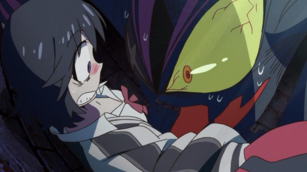 Fanservice is an issue, yes; Matoi Ryuuko (Koshimizu Ami) is a very good female character driven by revenge and badassery, but her magical suit is just a little too much to take without feeling insulted as a female. It's something about the way her appearance is commented on, about how her sexiness is distracting and how her face looks flushed and ashamed while she wears it, about how there's something of a rape reference in the way the suit forces itself on her and she later comments on "not having decided to wear it"; it feels gross to me, it's not very flattering, but it's part of a bigger problem. Again, I feel like I'm not really part of the audience who's supposed to be watching this; I feel left out even though the protagonist is female, and I'm not really sure what to make of such an odd feeling. It's hardly something I could explain, and it's not like I think the anime is purposefully sexist or anything over the top like that; it just doesn't work for me, and it doesn't have to. It's a very good show, and I know that, but everyone gets to choose what they watch and why. I'll definitely still be watching (though not blogging), because there was still plenty for me to enjoy from the premise and animation, but we'll see if this odd feeling persists further in or not.
