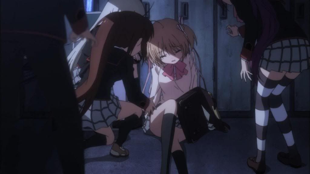 Right from episode one, you can tell this isn't quite the same series as the first half; it starts out lighthearted, yes, but while the first series starts out happy and care free for quite some time, the darkness is clearly in view this season, even if it's not come quite completely. Kurugaya, who was the only girl besides Rin not to have her arc covered last time, seems to be the focus, and she comes into her own narrative as powerful as a storm. When Kudryavka and Komari are targets for bullying by some classmates who want to get back at Kurugaya, she snaps; all her silent anger and fury breaks loose in a terrifying display of unrestrained loyalty, and she successfully horrifies the offenders into mushy puddles of fear (figuratively, of course). It feels almost odd to see such a dark moment happen in contrast with the much lighter and friendlier first half of the episode (a hotcake party, mmm), but it's not really out of odds with the series' tone, per say. It just seems that the storm has arrived quickly, and I think it signals just how much less unrestrained the next two cours plan to be.