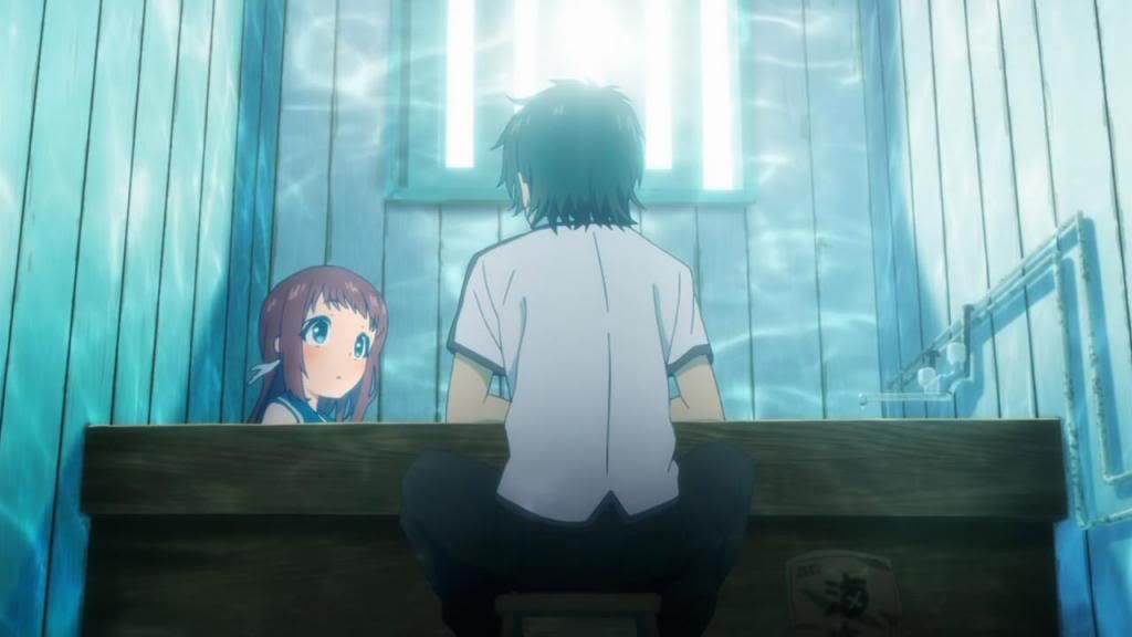 That’s all well and good for a story about two worlds clashing, but is it worth watching? I certainly think so, though it depends on what you want to get out of the experience. I do think the character designs are a tad too moe for my usual taste, but when I consider the fact that these are actual children we’re looking at, middle school students instead of the usual high school offering, the art style feels somewhat more natural. The way the characters act also feels right for this age group; being a teen is never easy, and when the horrors of puberty first set in, children can be an utter nightmare of hormones and unreasonable anger. I think Hikari in particular, while a little grating, is a fairly perfect depiction of a typical young teen, full of jealousies, possessiveness, insecurities, and a bad temper. The other kids too aren’t far from what I’d expect of the age group, and I find that realism in personality to work well here. In addition, while the characters look (mostly accurately) juvenile, P.A. Works doesn’t skimp out when it comes to creating the world and atmosphere. The art is gorgeous, breathtaking even, and there are plenty of beautiful shots of both the underwater world and the seaside town. As to the story itself, I see a lot of potential in all three points of possible drama, and I can’t wait to see how the series develops from here.