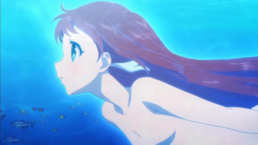 That doesn’t mean these kids should stay the way they are. There’s definitely a lot of growing up to be had on everyone’s behalf, and that’s where I think the social problems come into play most powerfully. The idea of sea and land people living together, heavily bearing on Manaka and Tsumugu’s attraction, is a lot more complicated than simply acting as the source of teenage angst. It is apparently forbidden for the people of the sea and the people of the land to come together and fall in love; should such a union happen, the underwater village banishes the sea person in question, forcing them to abandon their previous life and family. That adds a darker shade to an already complex interaction, and I don’t doubt that the kids will have a lot to deal with and learn from now on.