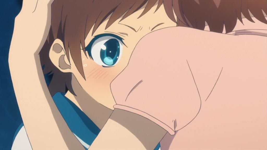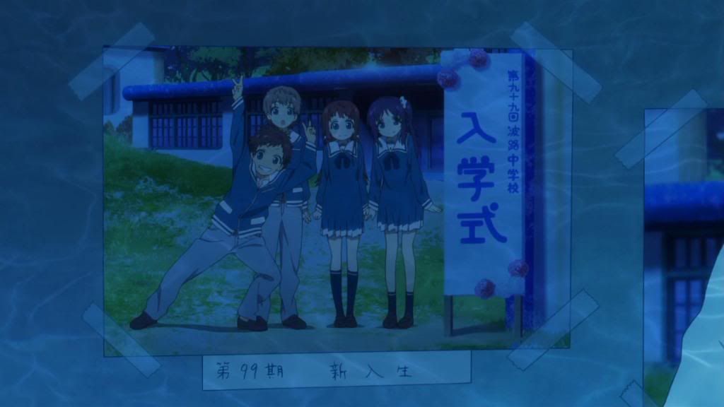 Of the two sides, I think the prejudices of the sea people are explored a bit more thoroughly than those of the land, but they’re not exclusive either. On the wake of Akari’s possible banishment from the underwater village, we learn that there’s a very specific reason for why people leave when they fall in love with people of the land. It would seem that the quality that allows the sea people to live, a substance called Ena that sticks to skin from birth, is not present in the children from a union between land and sea. As a result, the child of a mixed parentage would be unable to survive underwater, and thus the sea parent would be forced to leave the village in order to raise that child. Of course, necessity seems to have become tinged with prejudice and anger over time. There’s no reason to banish someone so that they lose all contact with their friends and family just because they “married out”, for instance, nor is there any reason to view such a union as “betrayal”, were it not for one somewhat understated fact. Akari, for instance, mentions that there are only “about four” marriageable guys her age in the village, and that getting married is thus somewhat difficult. We also see that Hikari, Manaka, and the others seems to have been the sole students at their old middle school, a place that held exactly four desks and a picture of a slightly younger group. That seems to speak volumes about the social situation and thus the friction between the land and the sea; the sea population is dropping. Dramatically. Even worse, when a sea person leaves to marry above the land, that lessens the reproductive potential of the village; a person who could raise a child under the sea now has to leave to raise their mixed children above the waves. That leads to uneasiness on the part of the remaining umi no hito, who are watching their community and culture slowly die away, and to understandable but misplaced resentment toward the world outside the water.